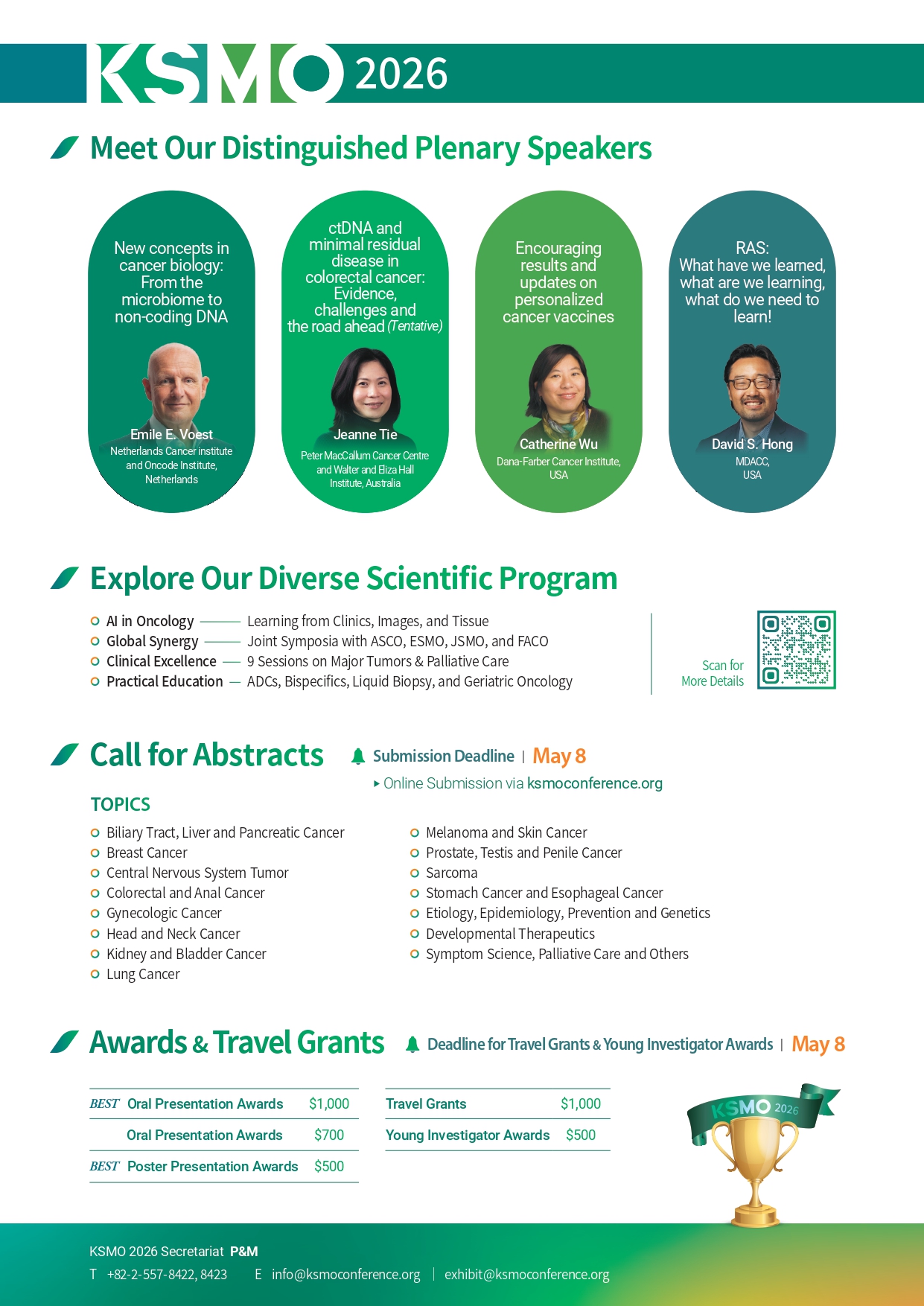 【開催のご案内】KSMO 2026(韓国・Korean Society of Medical Oncology )Call for Abstracts: Deadline – May 8 (Fri), 2026 (KST)